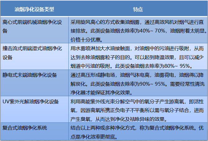 各標(biāo)準(zhǔn)已明確規(guī)定,必須安裝油煙凈化設(shè)備。新興榮福收集現(xiàn)行市場上的油煙凈化方式,主要分以下幾種:離心式前端機械油煙凈化設(shè)備、撞擊流式前端濕式油煙凈化設(shè)備、靜電式末端油煙凈化設(shè)備、UV紫外光解體油煙凈化設(shè)備和復(fù)合式油煙凈化系統(tǒng)。這幾類凈化系統(tǒng)各有優(yōu)勢,新興榮福為大家簡單介紹一下: